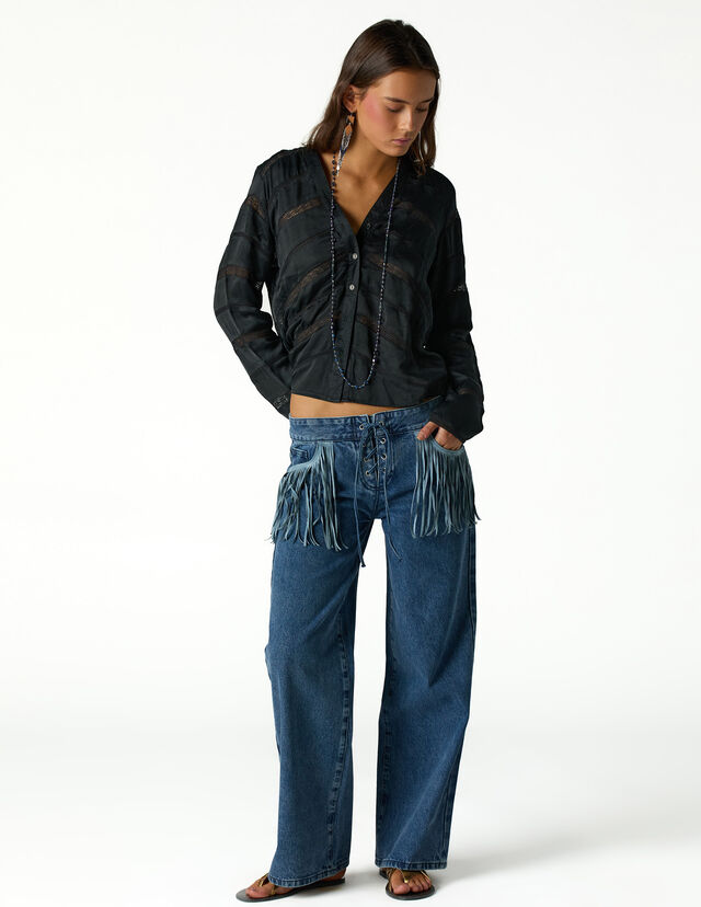 BLUE FRINGED JEANS