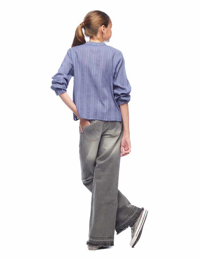 Camisa cuello volante doble raya cobalto