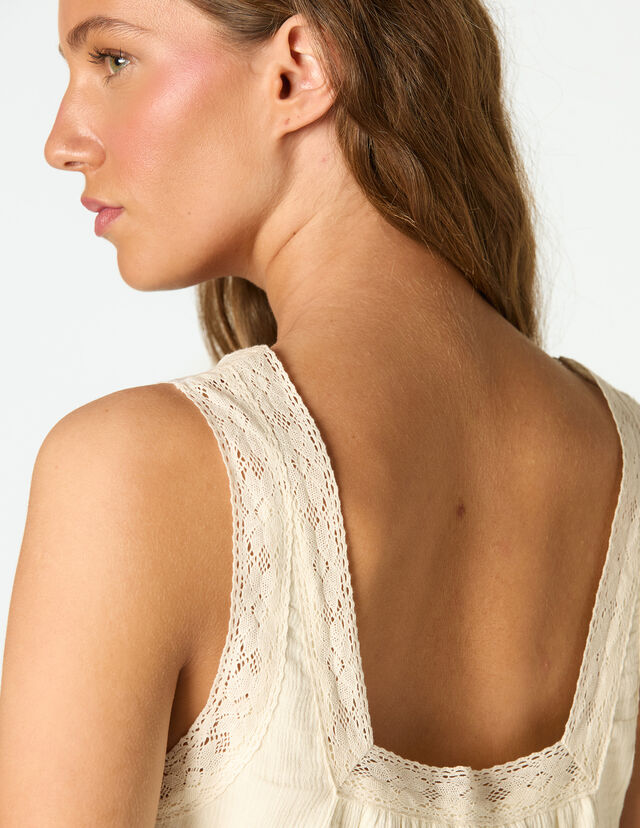 Girls’ top in plain fabric. Design with wide straps and square neckline. Lace detail. Available in two colours.Model height is 1,81 cm wearing size M.