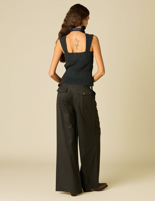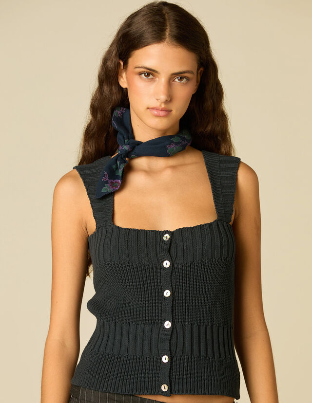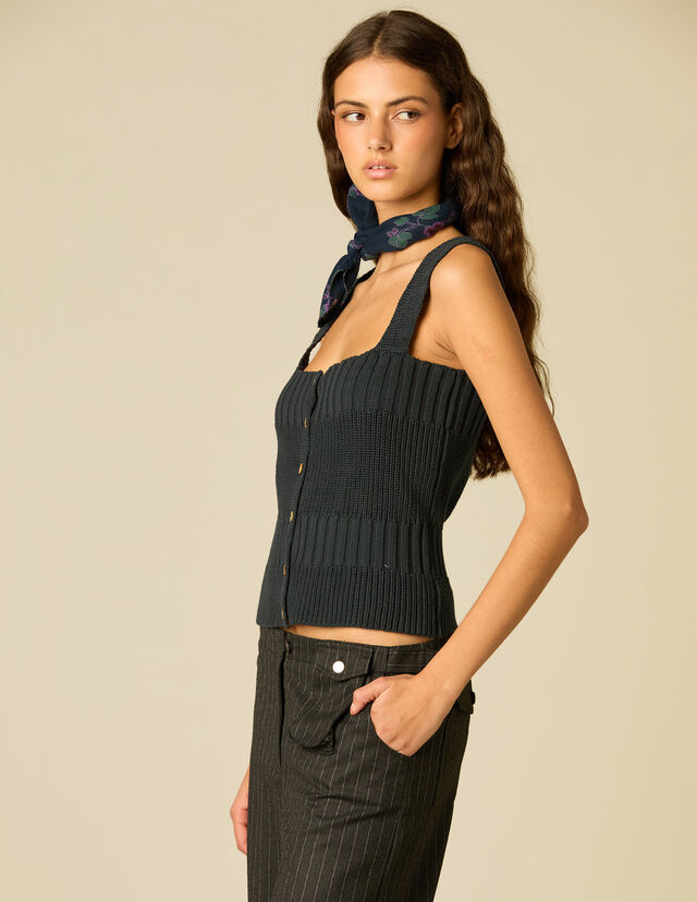 TOP CÔTELÉ BOUTONS ANTHRACITE